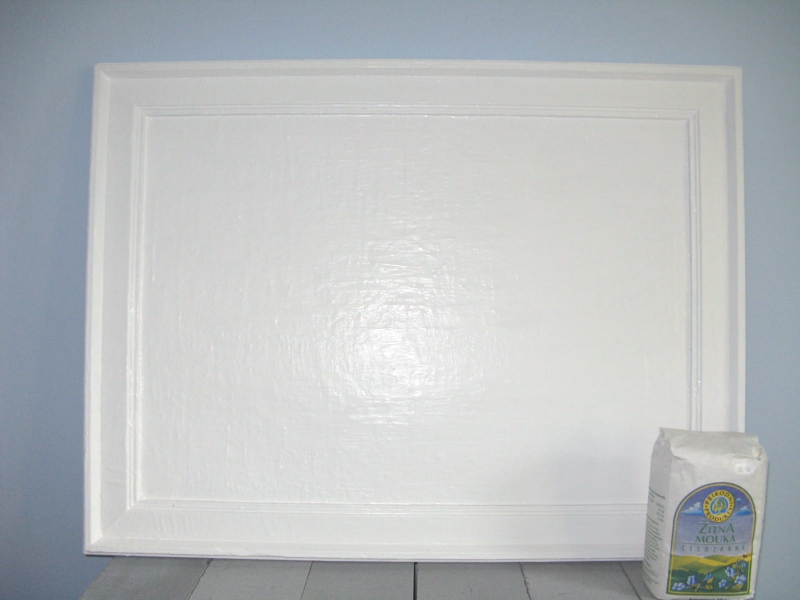 Ahoj lidičky. Nakreslit ten les se mi nedařilo a nedařilo, takže jsem vzala tatínkův bílý Balakryl a všechno přetřela na bílo. To je barva vyzařující úplně nejvíc pozitivní energie. Na přiložené fotce je i kilo mouky, aby bylo vidět, že je to opravdu velké dílo. Vyvolávací cenu jsem vypočítala takto: nejdražší český obraz prodaný v aukci stál 47 miliónů korun a já jsem řekněme milionkrát horší malířka než pan malíř Kupka, takže vyvolávací cenu stanovuji na 47 Kč. Slavnostně zahajuji aukci. Rozbijte prasátko a přispějte na dobrou věc. Na vydání té mé knížky. Moc děkuji. Konec bude ve středu ve 21:22.Vaše příhozy pište prosím do komentářů. Mějte krásný a šťastný den. Andrejka